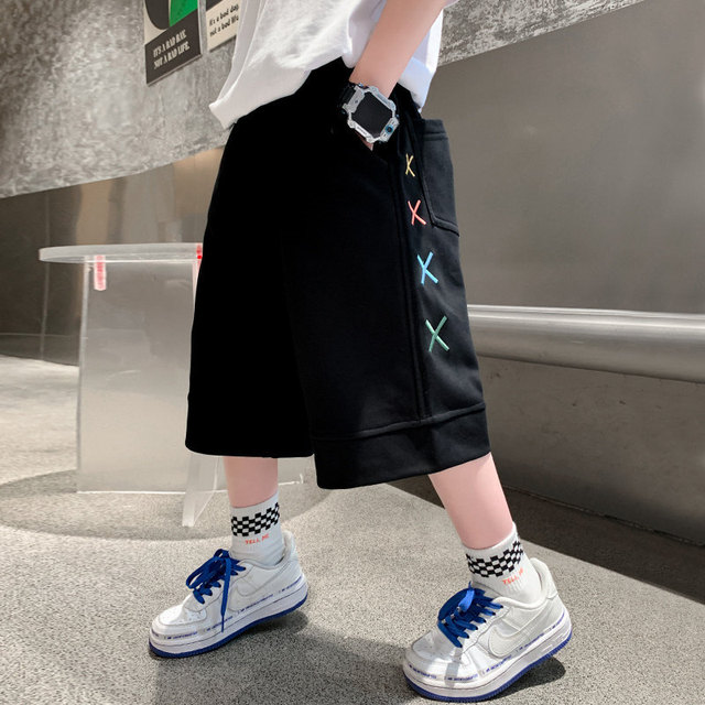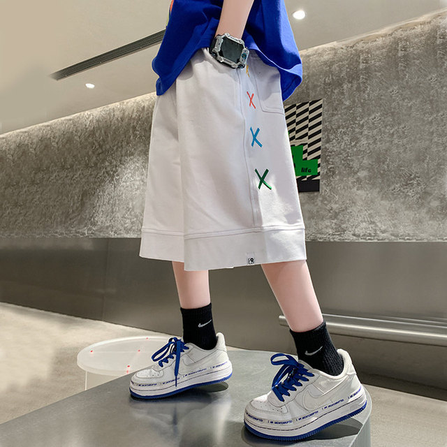 Summer Shorts for Kids Boy Korean Children White Black Sport Clothes Teenage Loose Cotton Short Sweatpants 5 To 14Years Old