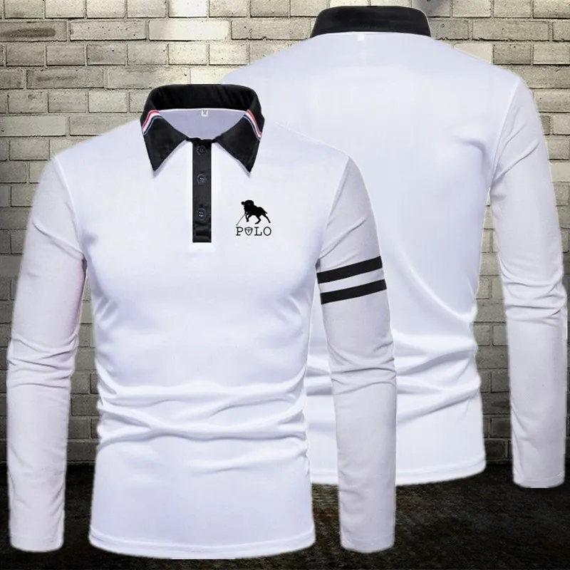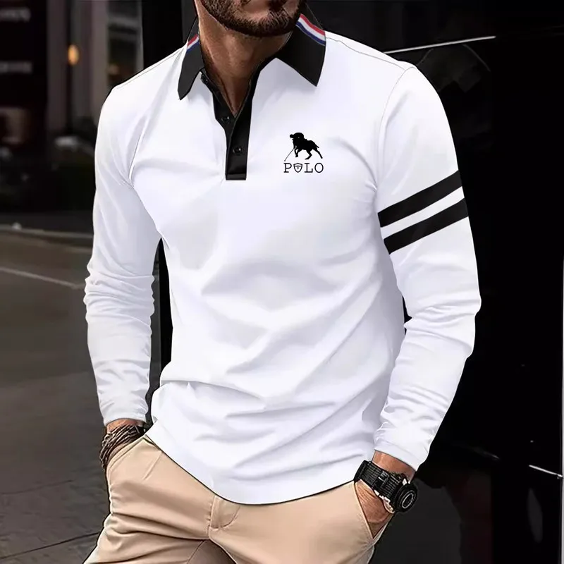 Brand new 2025 men’s spring collar long sleeved polo shirt, business printed casual minimalist top