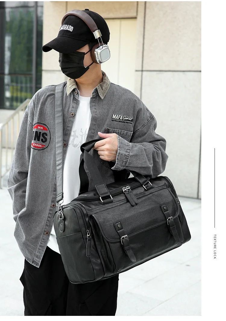 Men‘s Large Capacity Trendy Travel Bag Gym Bag with Waterproof Fabric for Business Trip Work Exercise Shopping School Bag