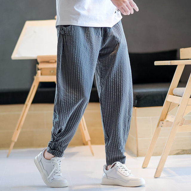MrGB Cotton Linen Casual Pants Men's Cross Button Stripe Chinese Style Baggy Male Harem Pants Large Size 5XL Retro Trousers