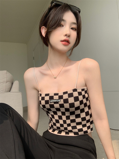 New Fashion Women Sexy Vintage Checkerboard Camisole Summer Camis Women Casual Tank Vest Sleeveless Crop Tops