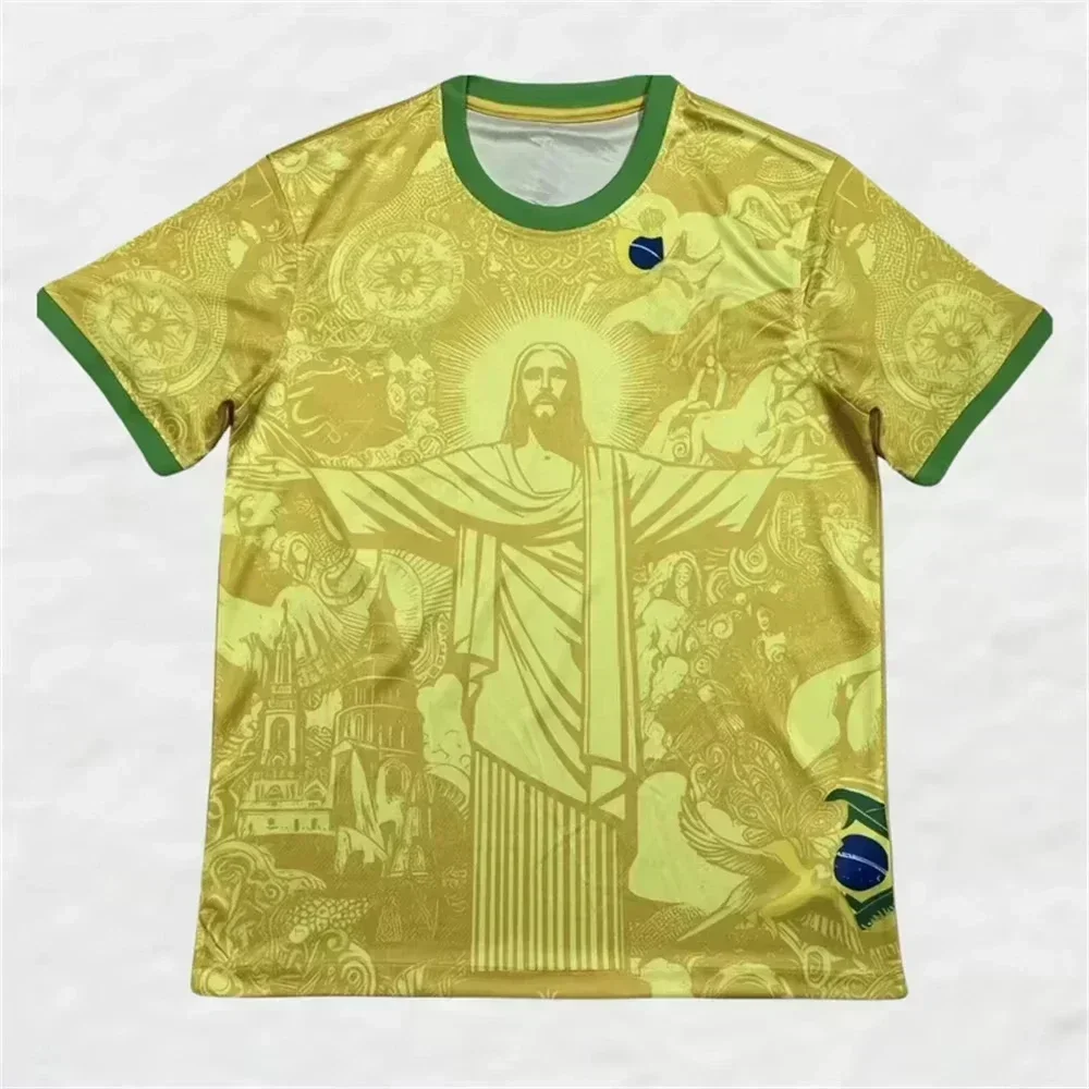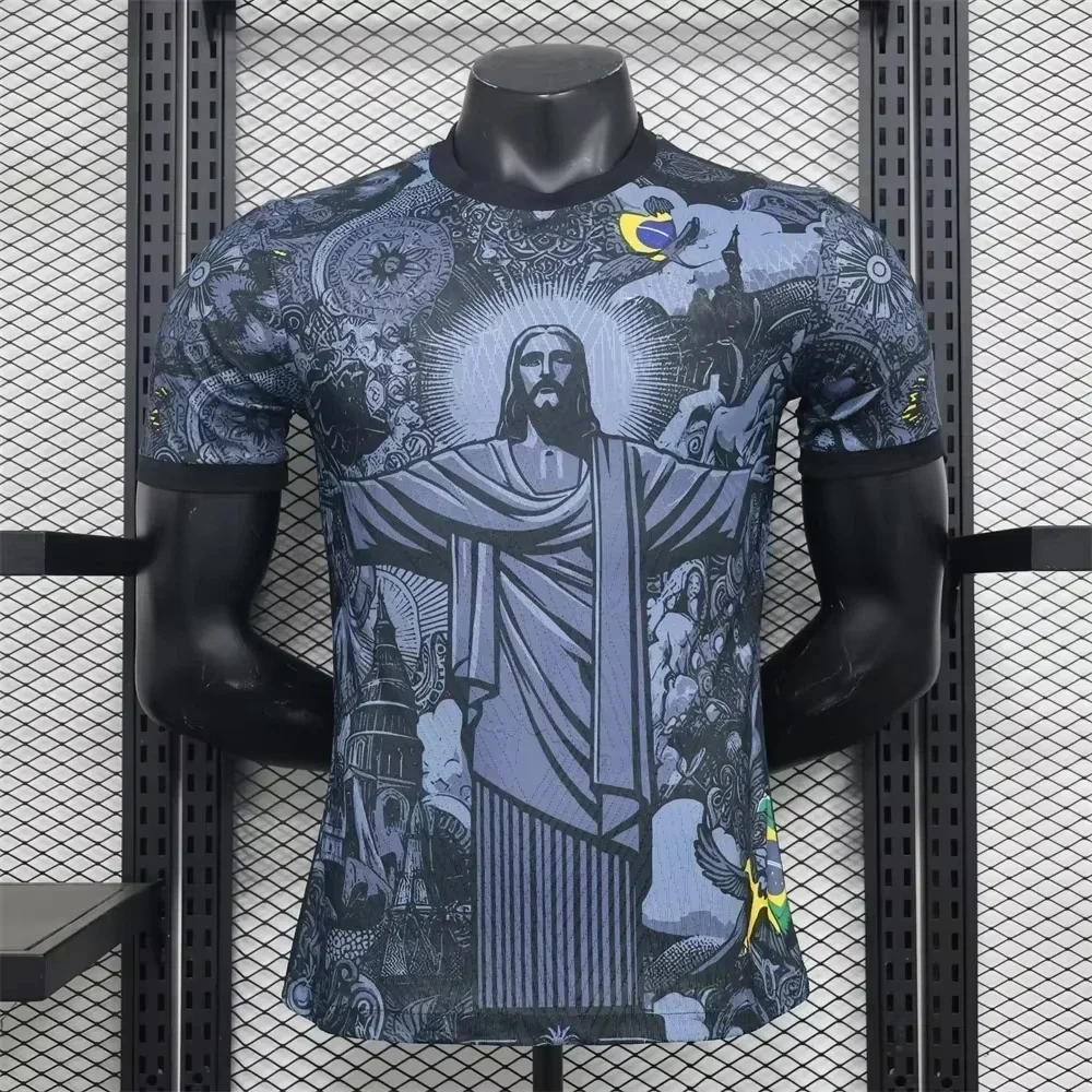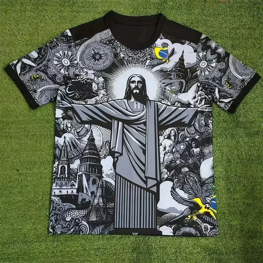 Summer Football Training Top Brazil Special Edition Jesus Black Grey Football Jersey Adult Children Outdoor Men Tshirts