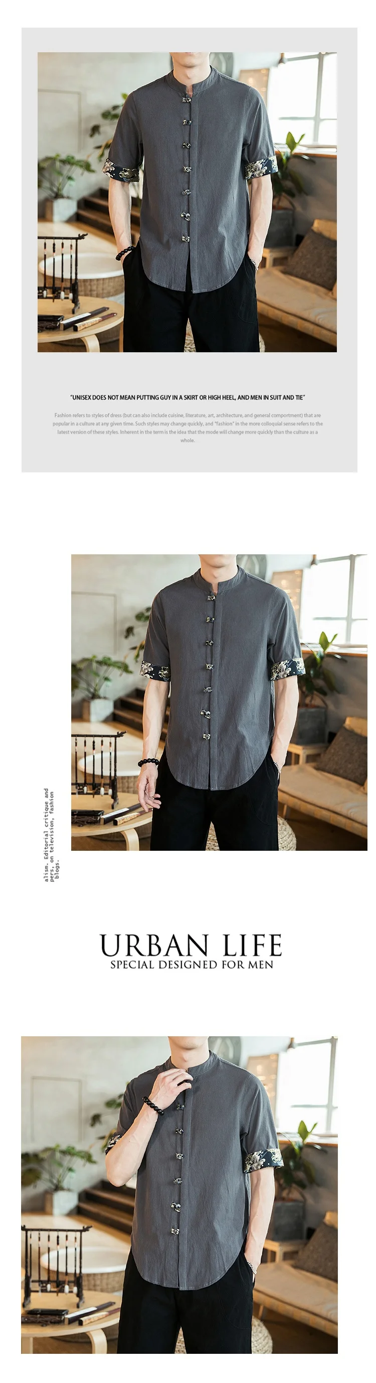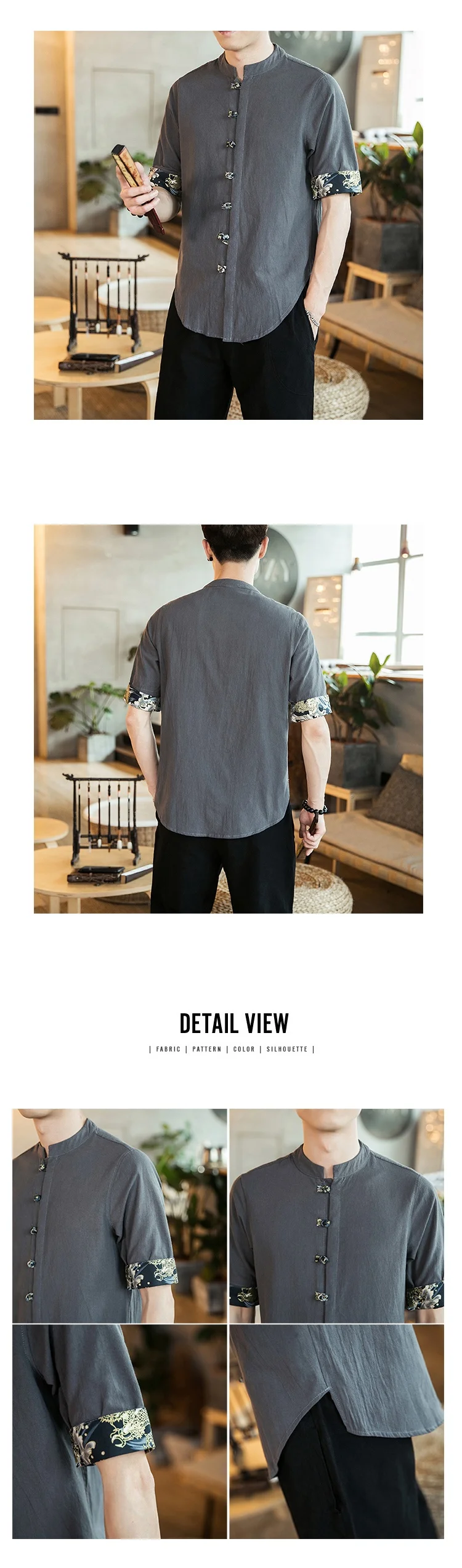 Zongke Spring New Casual Short Sleeve Shirt Men Chinese Style Cotton Linen Men Shirt Half Sleeve Male Clothing Brand M-5XL